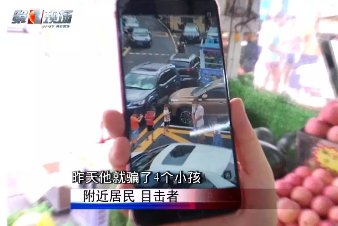 ↑一位孩子家长还给记者看了昨天目击者拍摄的照片,说是一名男子用零食诱骗了4个小孩,骗至停车场准备上车时被及时拦下。