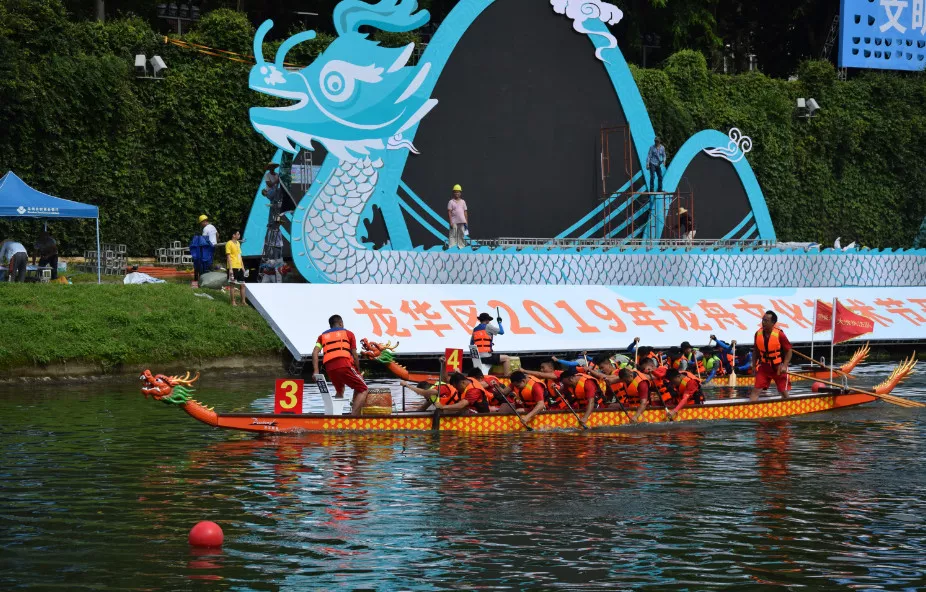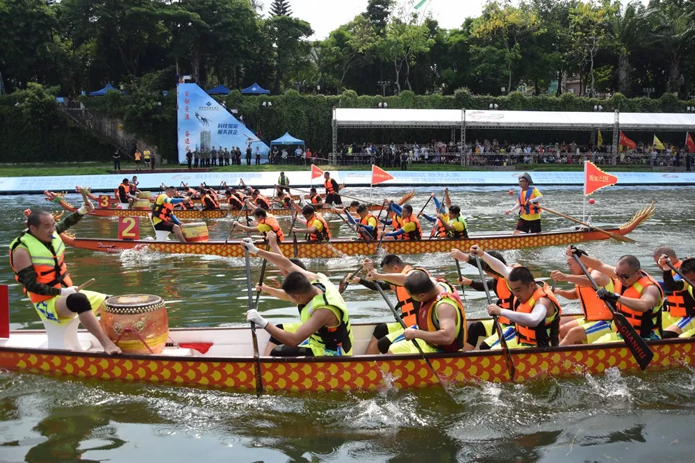 5月19日上午9点,由深圳市文化广电旅游体育局、龙华区人民政府主办,龙华区文化广电旅游体育局、观湖街道办事处承办的龙华区2019年观澜河国际龙舟赛社区组、机关企事业组标准龙舟(12人龙舟)350米男子直道竞速赛正式打响。