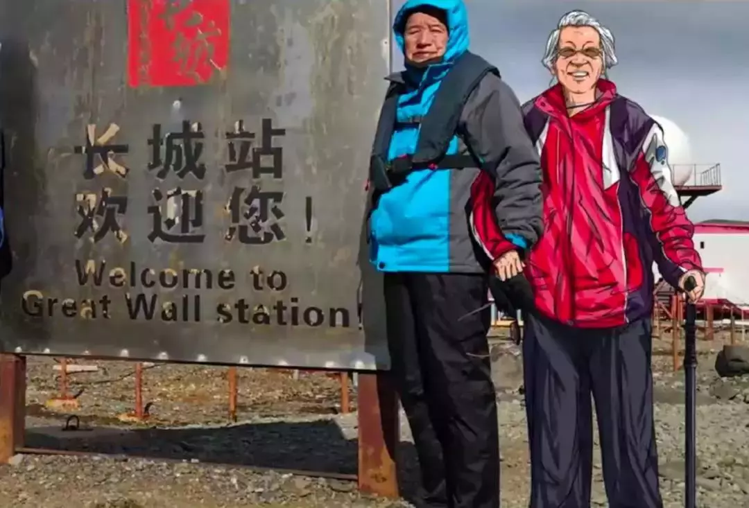 用手绘定格这份爱,帮助邱协耕和他最爱的人南极“合影”。图源:央视新闻