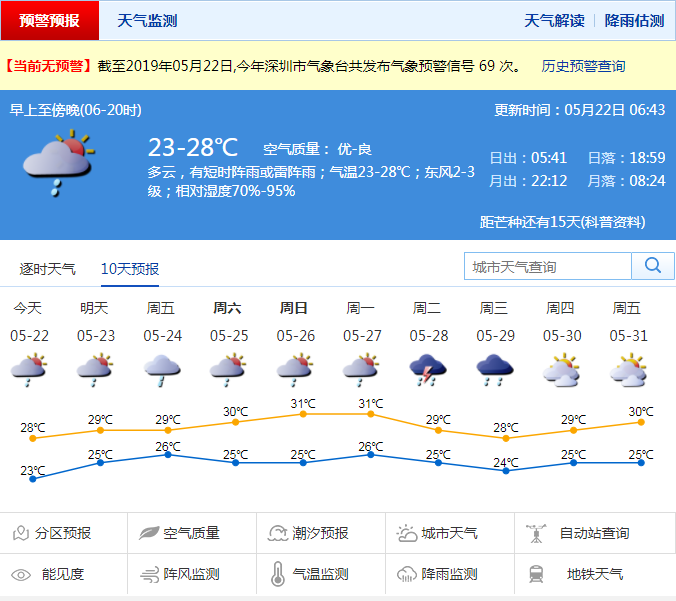 鹏城进入“降雨模式”今日最低温徘徊在23℃左右