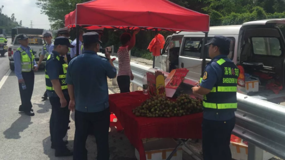 深圳一条快速路边竟然有人摆摊卖荔枝 ...