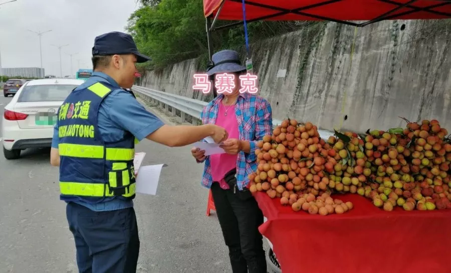 为此,5月15日下午,执法支队龙岗大队又将相关法律法规打印出来,做成温馨提示,在横坪快速路上一一派发给设点摆摊的果农们。