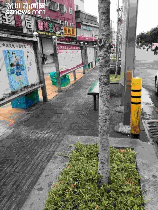 被熏黑的树干、污水横流的站台…石岩新村公交站环境好差!