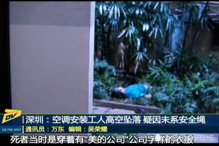 从拍摄的视频可以看到,死者当时是穿着有"美的公司"公司字样的衣服,目击者说,死者是在13楼安装空调外机时出事的。