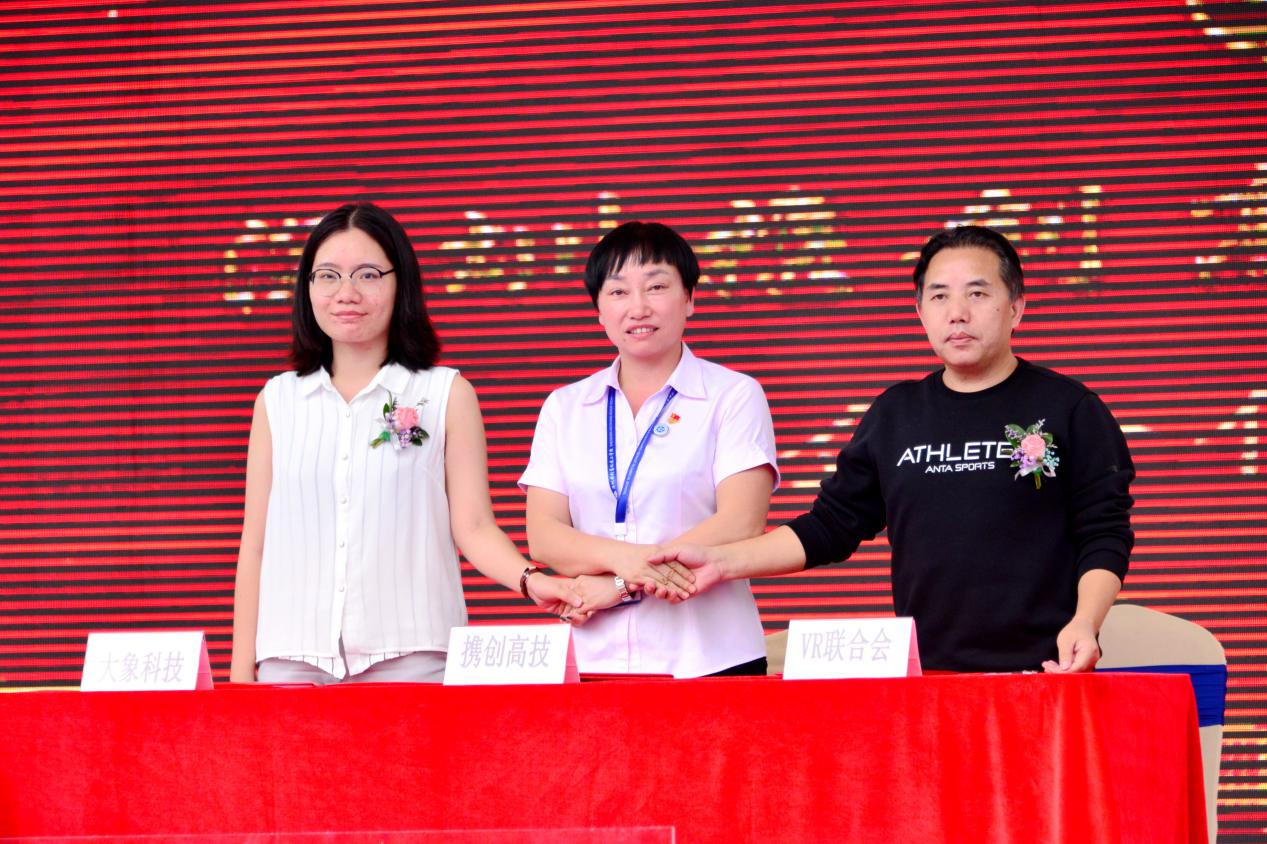 揭牌仪式上学校分别与深圳市虚拟现实产业联合会、深圳市电子竞技运动协会进行了校企合作签约。