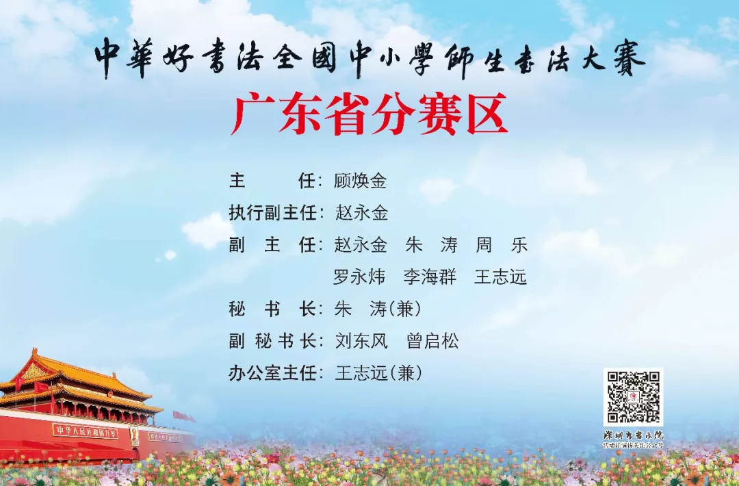 启动仪式宣布成立“中华好书法”全国中小学师生书法大赛广东省分赛区组委会、评委会和秘书处等工作机构。顾焕金任广东省分赛区组委会主任,赵永金任广东省分赛区组委会执行副主任,朱涛、罗永炜、周乐、李海群、王志远任广东省分赛区组委会副主任,朱涛兼广东省分赛区组委会秘书长,刘东风、曾启松任广东省分赛区组委会副秘书长,王志远兼任广东省分赛区组委会办公室主任。