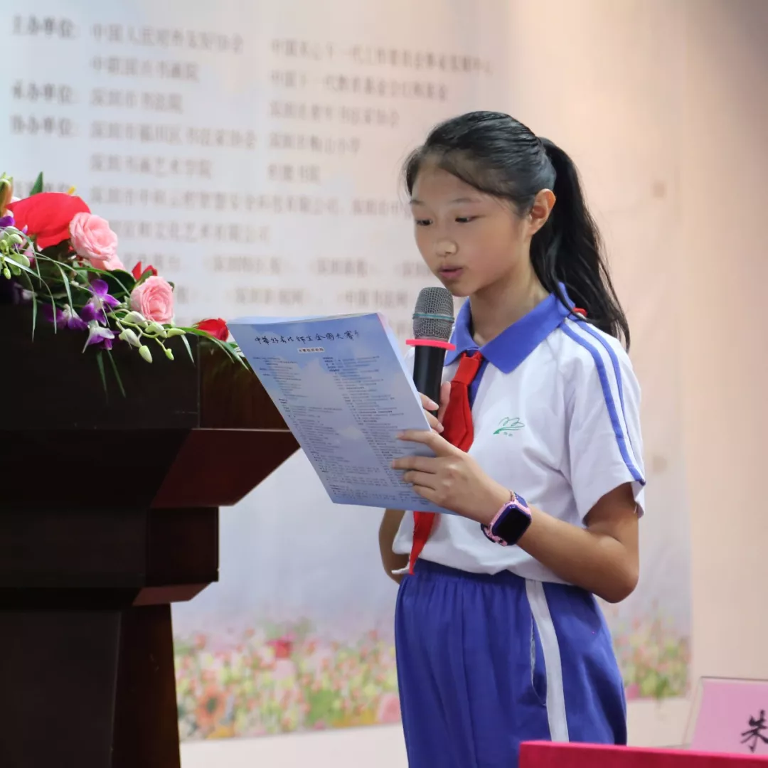 深圳市梅山小学胡颖欣同学代表参赛学生讲话