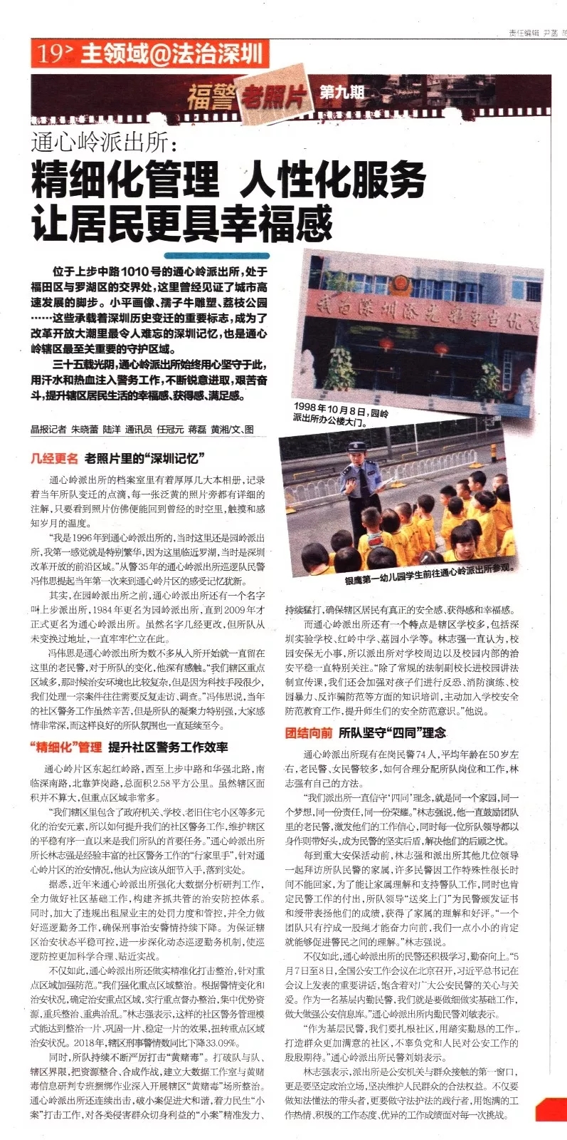 而通心岭派出所还有一个特点是辖区学校多,包括深圳实验学校、红岭中学、荔园小学等。林志强一直认为,校园安保无小事,所以派出所对学校周边以及校园内部的治安平稳一直特别关注。