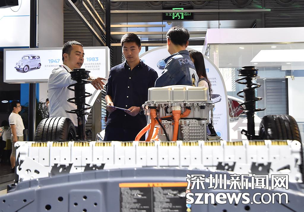 市民正在了解新能源车的构造