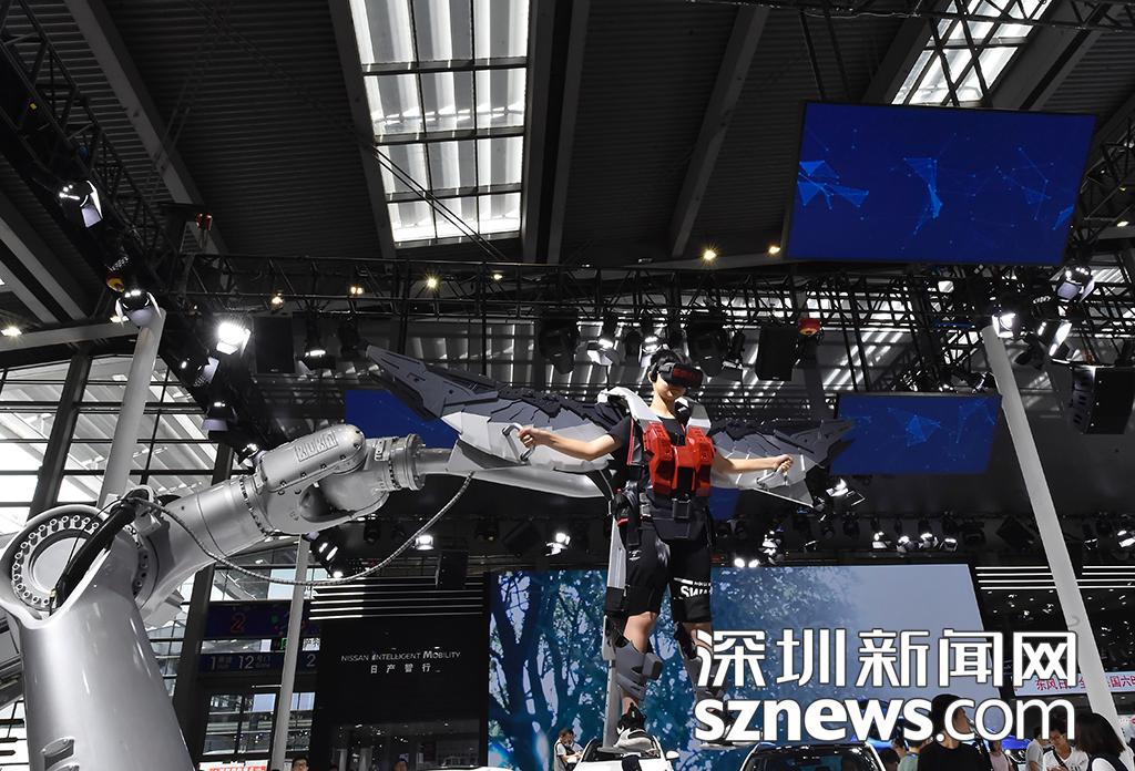 市民通过机器臂体验“飞翔”的感觉