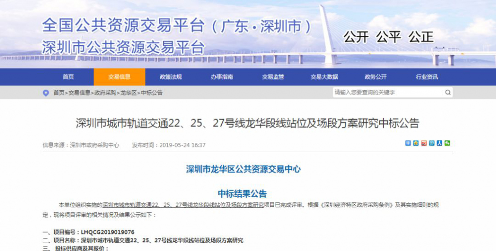 近日,深圳市公共资源交易中心发布了22、25、27号线一些方案的新消息。