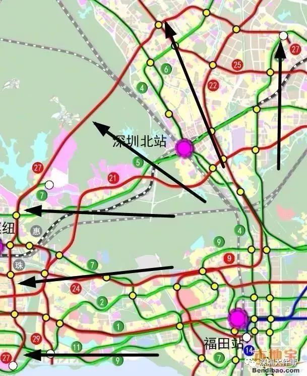 大致走向:福田保税区、梅景、民治、油松、富士康、桂花、黎光。(具体以公布规划为准)