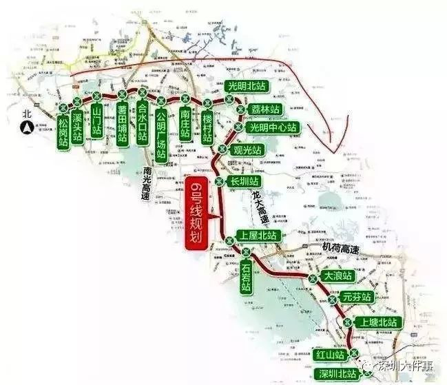 地铁6号线分一、二期工程建设,其中,一期线路起自深圳北站,终于松岗站,并与地铁11号线换乘,连接龙华、大浪、石岩、光明、公明、松岗等片区,线路全长约37.6公里。