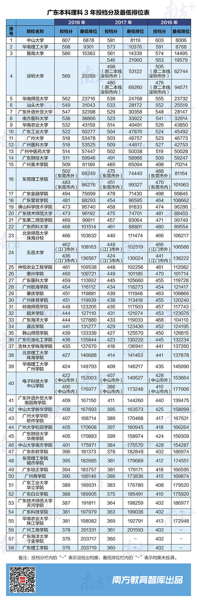 南方教育智库独家统计了2016-2018共3年广东高校录取分和最低排位,为广东考生全面分析,排位多少名,能上广东好大学?