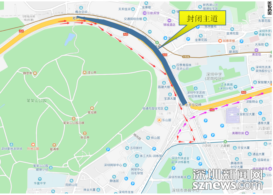 @深圳司机,夜间北环上步立交段东行主辅道轮流封闭