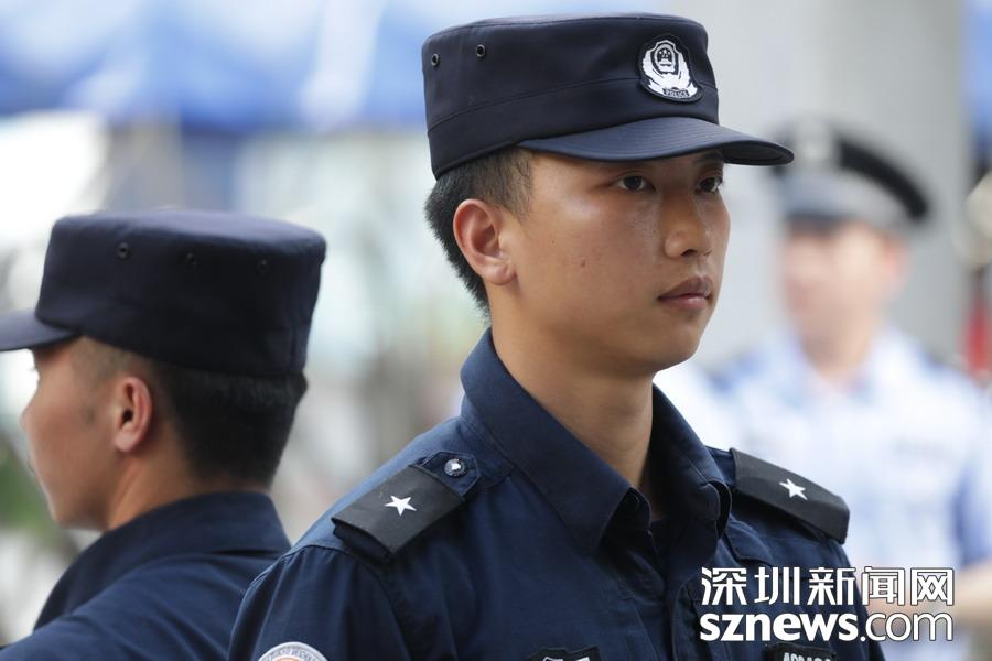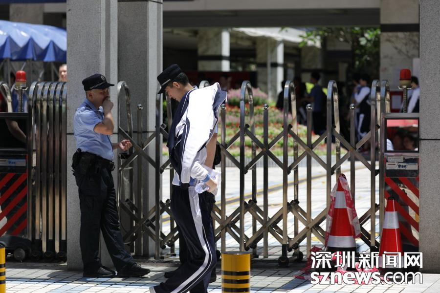 深圳实验中学考点外,高考保障人员正在执勤