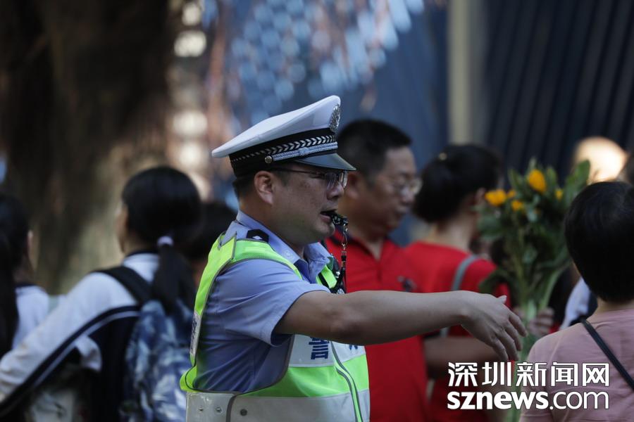 高考首日,深圳夏天的炎热初显威力,各路高考保障人员在炽热的阳光下有序开展工作:交警铁骑护送考生顺利抵达考场;爱心出租车免费接送考生;高考志愿者帮助协调考场外秩序……同时,比阳光更“炽热”的是送考家长们的热切和关心。