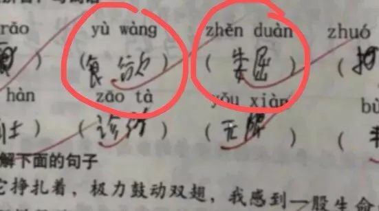 可是仔细一瞧,却发现了蹊跷。明明题目是读拼音,写词语,可是孩子写的词语和上面的拼音,完全对不上号,老师却依旧打了对勾。