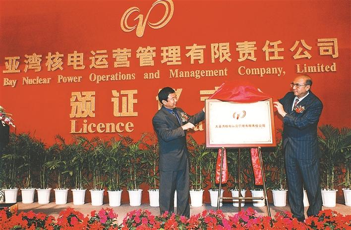 ▲2003年,中广核核电运营有限公司成立,昝云龙(右)揭牌。
