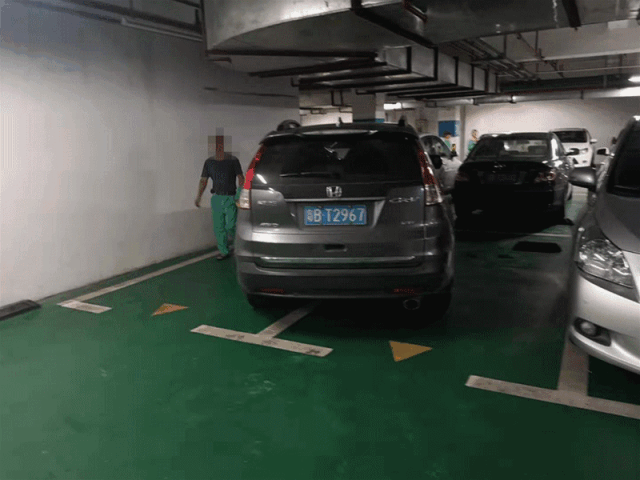 夹缝中停车,好苦,还有这种霸道式停车的,明明是竖着的车位,却横着停。