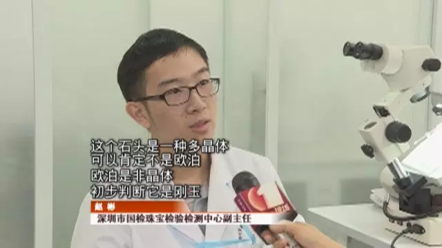 随后工作人员对石头的密度进行测试,并确定不是先前拍卖公司说的“欧泊石”,而是刚玉。