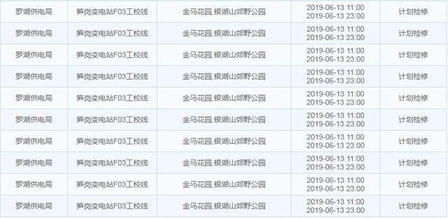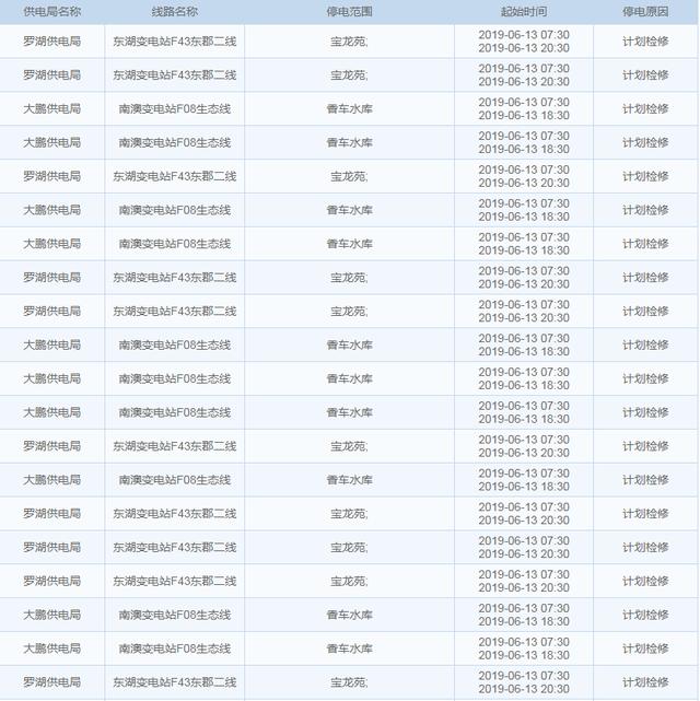 南方电网发布6月13日至6月16日深圳停电计划 涉及多个区