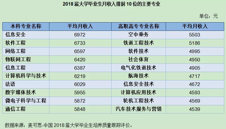近日,毕业生平均月薪排行出炉了,2018届大学毕业生月入4624元