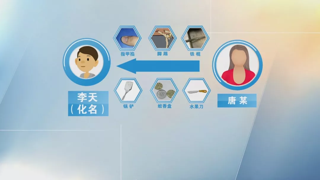唐某经常用指甲掐、拧受害人,用脚踢踹受害人,使用铁棍、锅铲等坚硬锋利物体殴打受害人头部和身体,让受害人长时间跪在蚊香盘上,甚至用水果刀多次割伤受害人,导致受害人到医院缝合伤口。