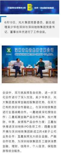 它发文称:光大集团正在与深圳地铁加快推进深圳地铁IPO各项工作