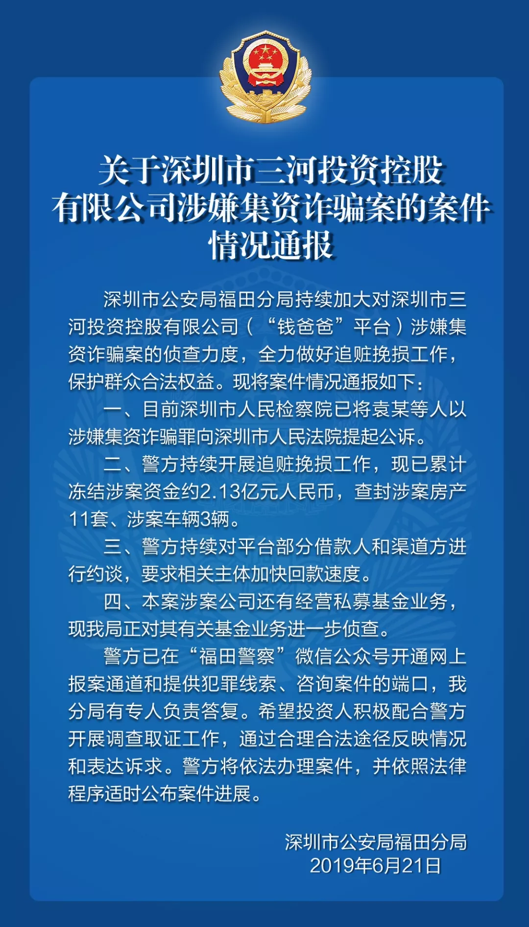 关于深圳市三河投资控股有限公司涉嫌集资诈骗案的案件情况通报