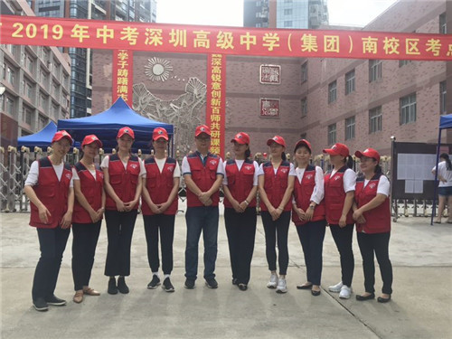 深圳高级中学门口搭建有休息区,记者了解到,这是学校物业自发准备的,休息区备有茶水、紧急医药箱和凳子,为考生家长提供休憩之所。