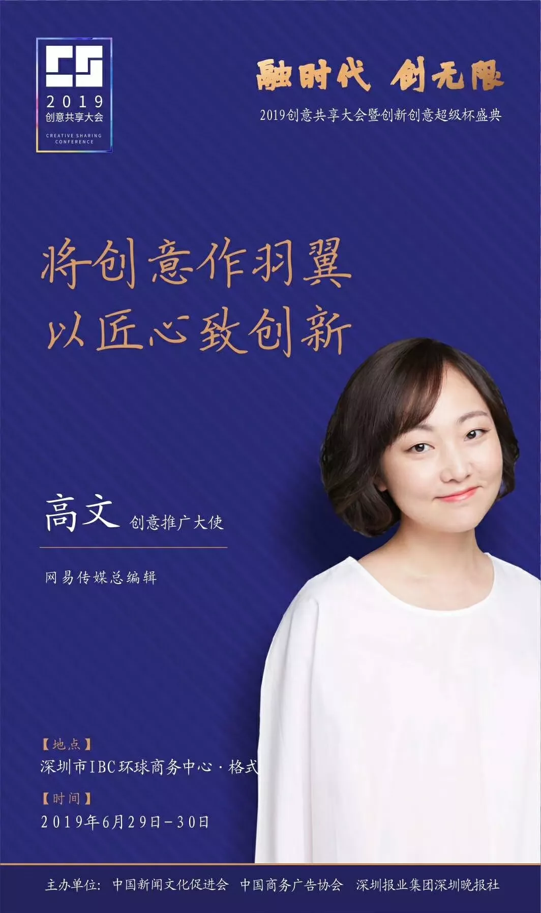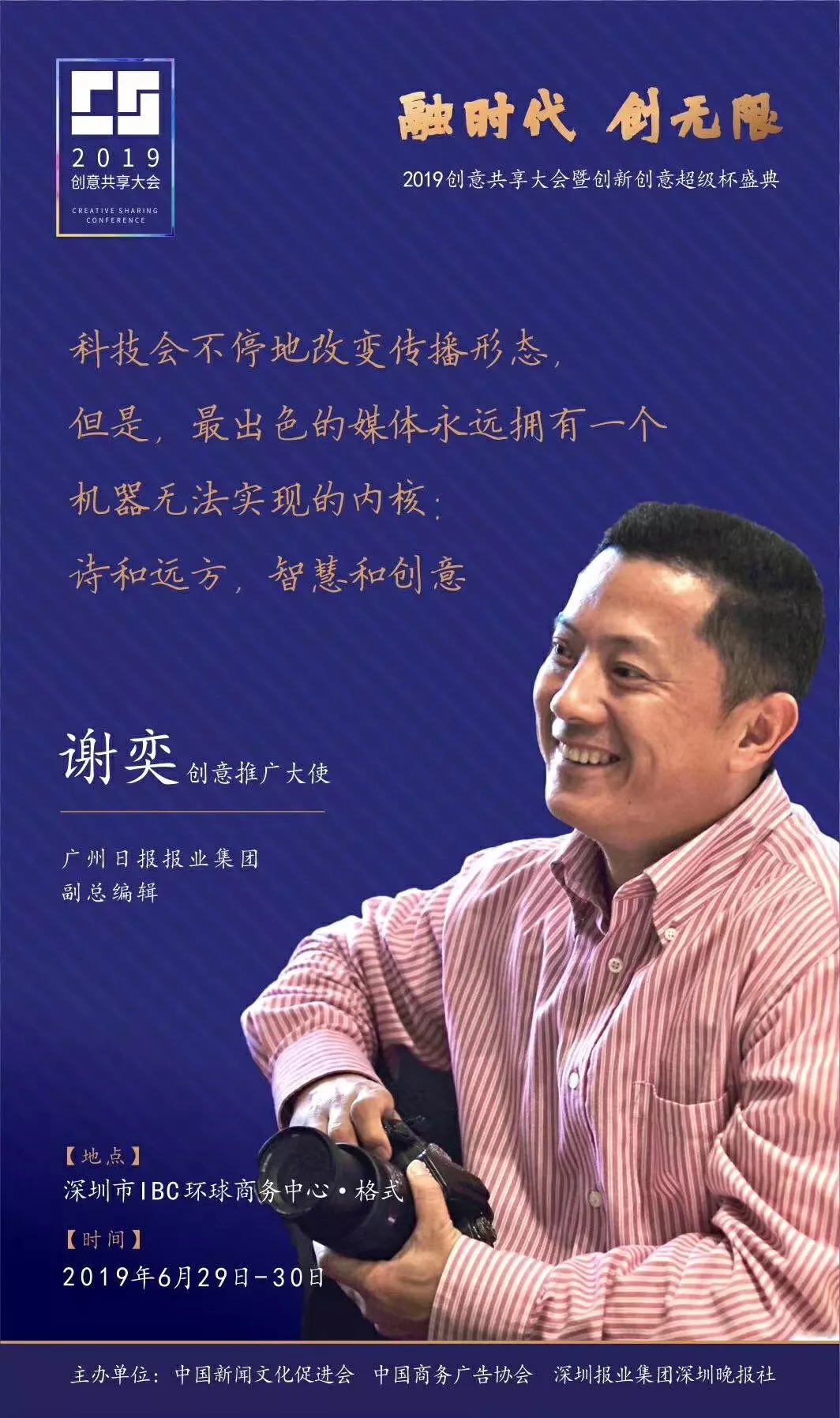 为了呼应这个时代命题,构建创新创意共同体,擘画美好图景和未来趋势,中国新闻文化促进会、中国商务广告协会和深圳报业集团深圳晚报社联合发起主办2019创意共享大会暨创新创意超级杯盛典。