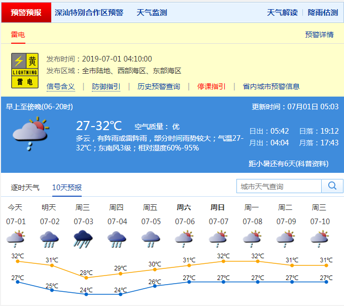 深圳新闻网2019年7月1日讯 深圳市气象台于2019年07月01日07时45分在全市取消高温黄色预,延续前几天的高温天气暂时缓解。
