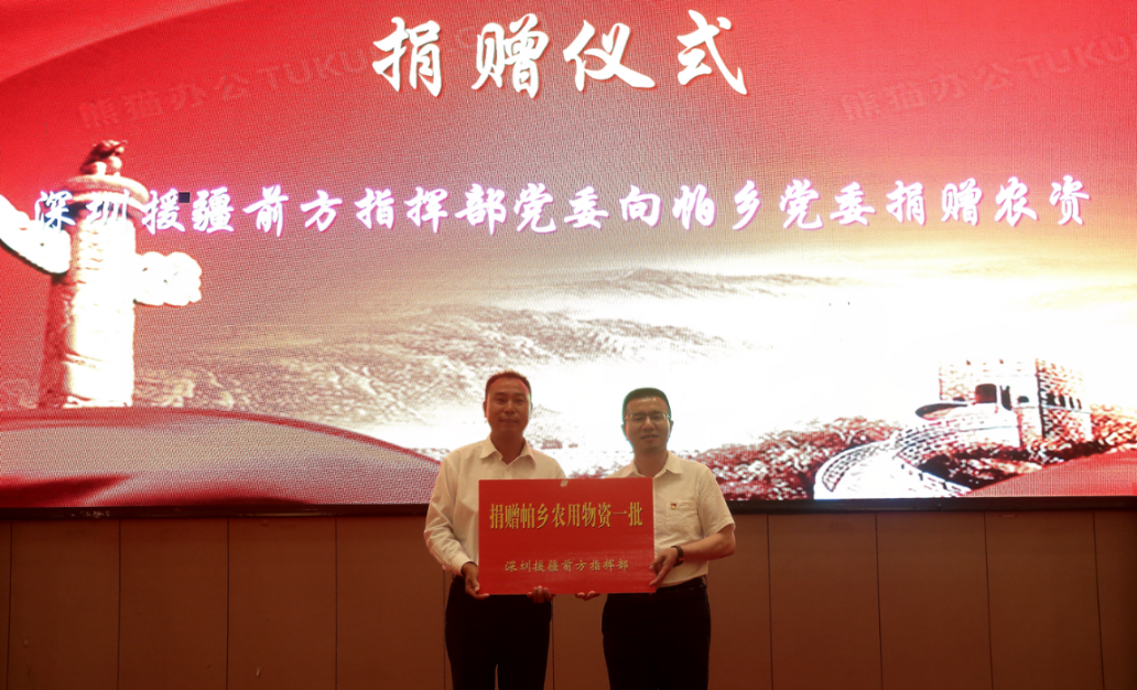 深圳援疆前方指挥部副总指挥洪隽代表深圳援疆前方指挥部向帕乡党委捐赠农用物资