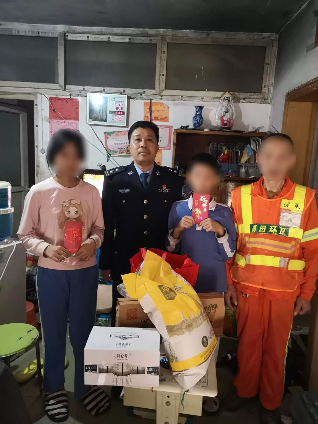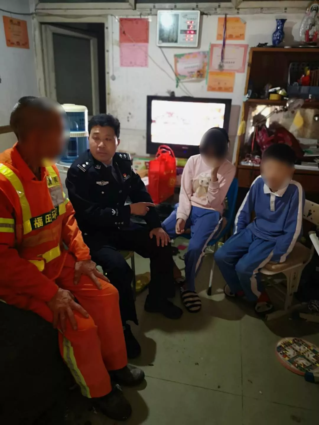 “不知道俩孩子怎么样了?”时隔半月,一天中午,梅林派出所社区民警钱洪兵按照惯例,再次来到了位于河背村的一间小屋前。钱洪兵已经记不清自己是第几次来这里了,屋里住着的正是他一直牵挂的两个条件困难的孩子。这一次,他为两个孩子带来了汉堡包和礼物。