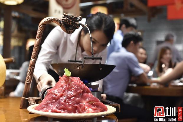 这道堂烹酸菜牛肉,岂止于嫩!肉片厚、大,与锅中的酸菜共煮,煮久不老。据说只有深圳分店才有的新品,符合本地食客口味。