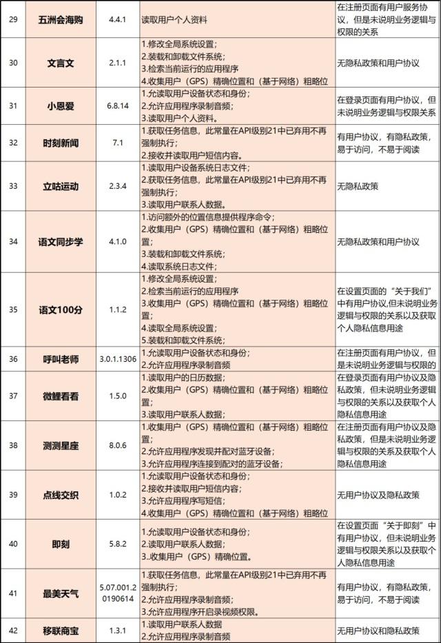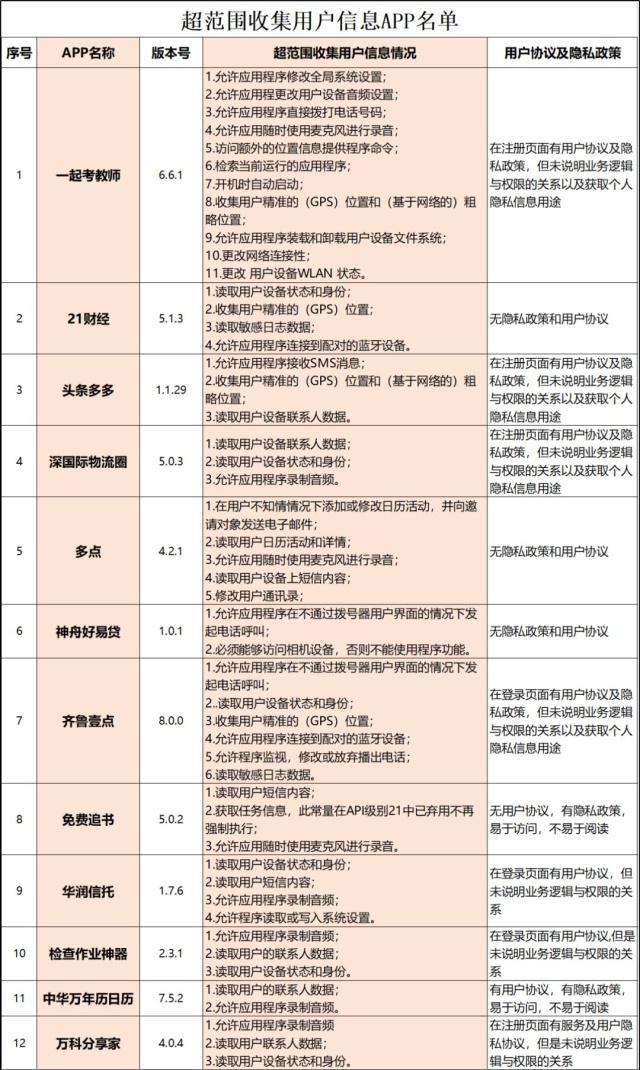 深圳特区报广州7月4日电 根据公安部“净网2019”专项行动和中央网信办、工信部、公安部、市场监管总局四部委关于开展APP违法违规收集使用个人信息专项治理行动部署,广东省公安机关近期持续开展2019年第二季度超范围收集用户信息APP清理整治工作,共监测发现1048款APP存在超范围收集用户信息行为。其中,“酷狗音乐”“艺龙旅行”“语文100分”等42款APP,存在超范围读取用户通话记录、短信或彩信,收集用户通讯录、用户设备上已知账号,超权限使用用户设备麦克风等突出安全问题。目前,有关监测情况已上报公安部通报属地公安机关开展清理整治。