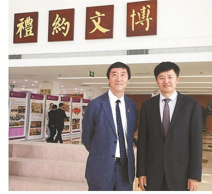 ▲李学金(右)与香港中文大学第七任校长沈祖尧。