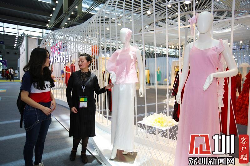前来观展的罗女士表示,“这个展馆的服装手感舒适,压褶图案比较精美,好看。”
