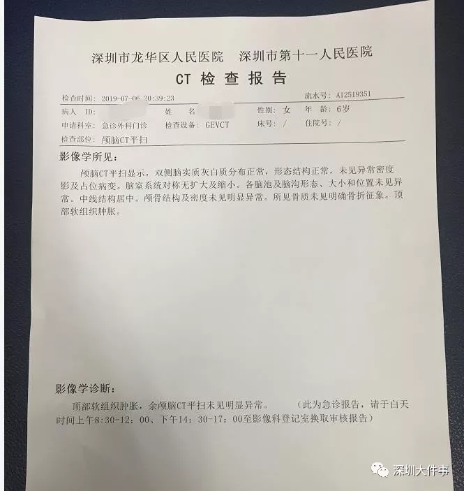 据了解,女童今年6岁,日前在上幼儿园大班,还有一个小妹妹。女童父亲杨先生告诉南都记者,经过医院诊断,女儿头部伤为普通的皮外伤,所幸未伤及大脑部位,伤口被缝了4针,精神也已恢复。当晚,一家人已离院回家。