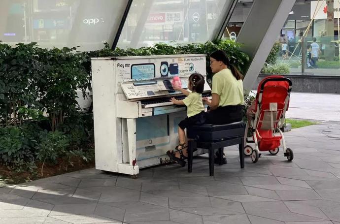 华强北街头还摆放了公共钢琴可供免费弹奏