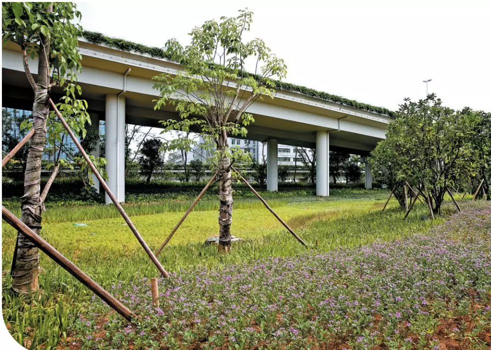 燕罗街道采用生态式种植模式,以“两轴、四带、四片、四面”为设计思路,通过增加树形优美的“大树+地景形式”打造重要节点,将乔、灌、草等不同植物交错种植,搭配疏密有别、宛如千姿百态的生态景观长廊,“惊艳”展现在途经市民眼前。