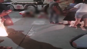 从市民现场拍摄的视频中看到,一女孩倒在重型自卸车旁,地上还有明显的血迹。画面中一名女子多次想冲向现场,都被附近的市民拦了下来。市民赖先生正好目击了整个过程,他说,这名女士疑似是倒地女孩的母亲。