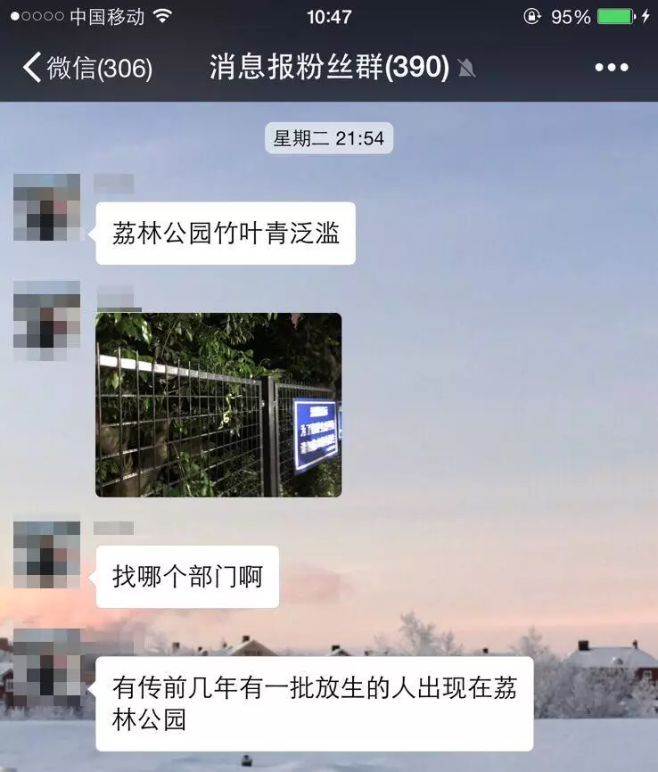 ▲消息报粉丝在群里报料,荔林公园有蛇出没。