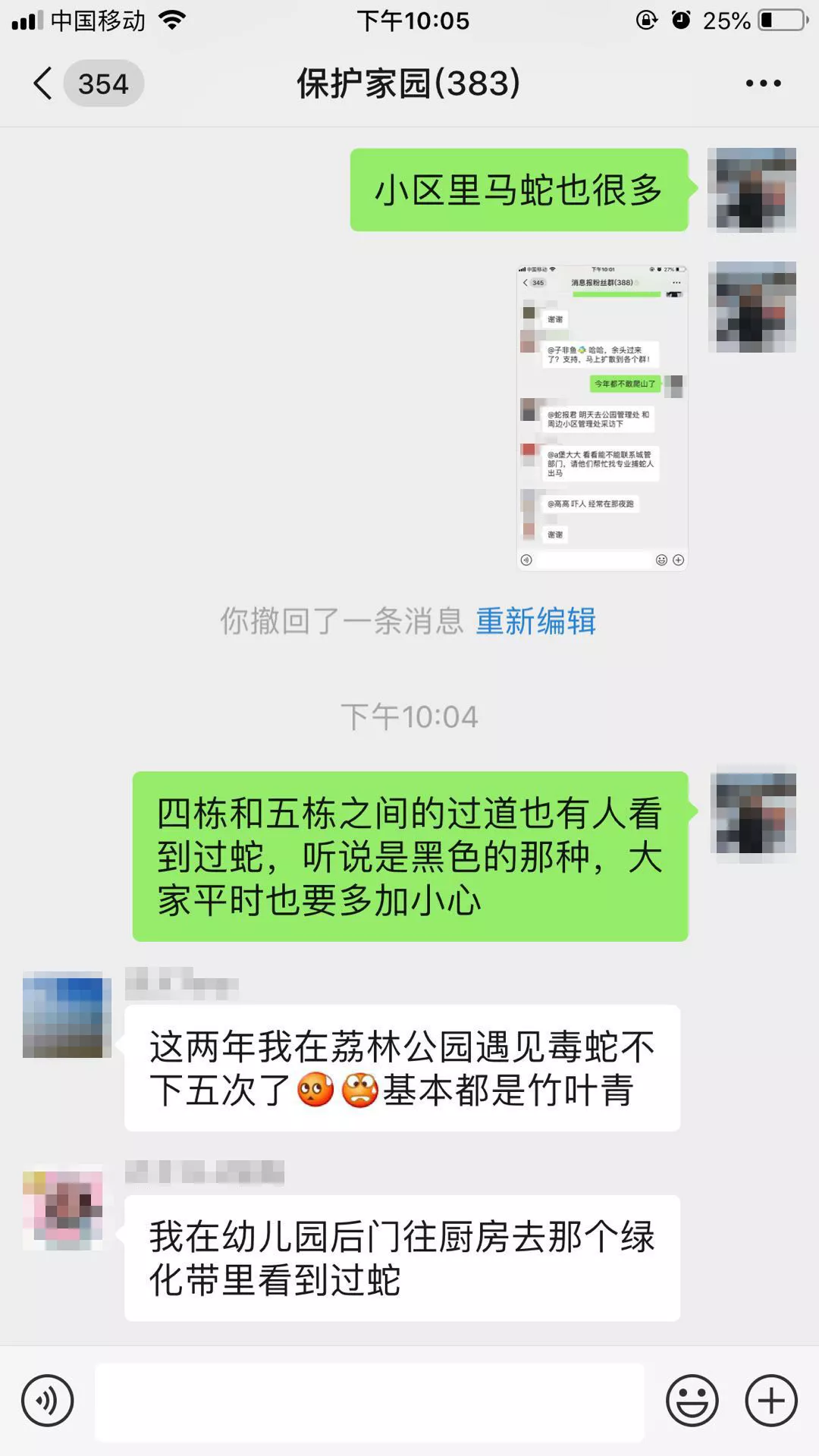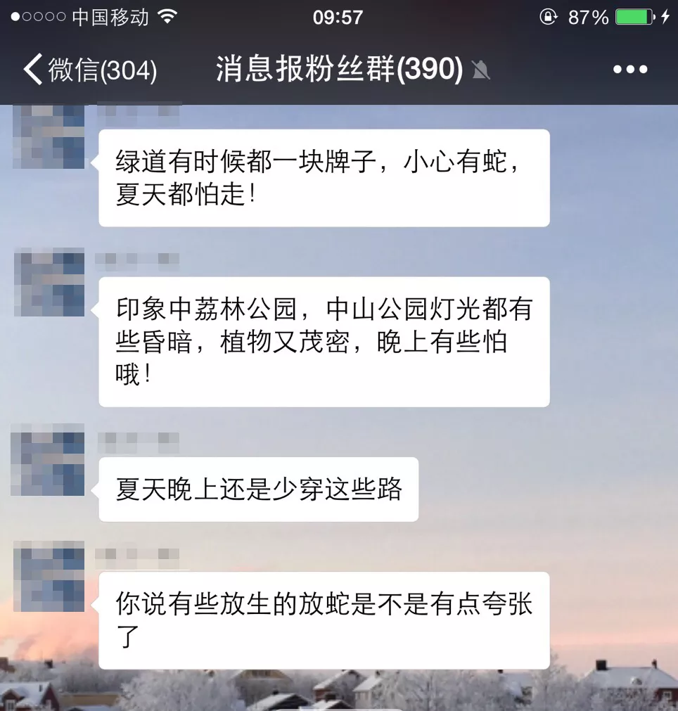 ▲消息报粉丝在群里报料,荔林公园有蛇出没。