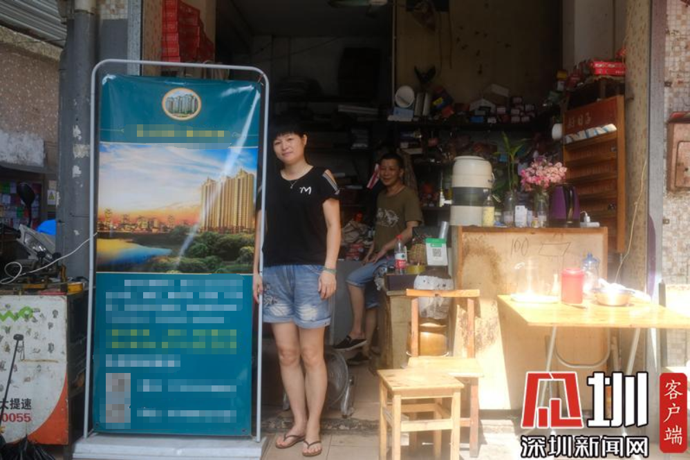即将离开白石洲,黎女士在自家店铺前拍照留念(摄于2019年7月4日