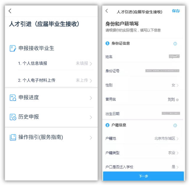 毕业生根据个人实际情况,按照系统提示填写身份和户籍信息、教育和综合信息两大类信息。