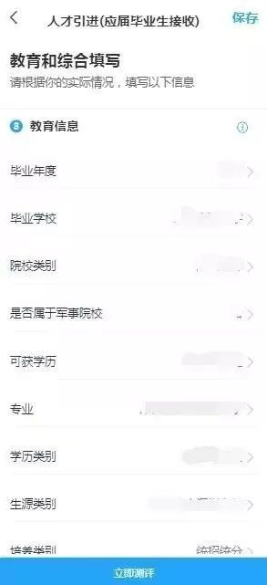 填写完成后点击下方测评按钮,系统将对填写的信息进行测评。