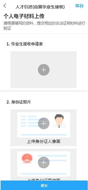 非深户毕业生上传《毕业生接收申请表》、毕业证、学历验证报告、身份证,深户毕业生除上传以上材料外,还需上传报到证,按照系统页面提示进行上传提交即可。