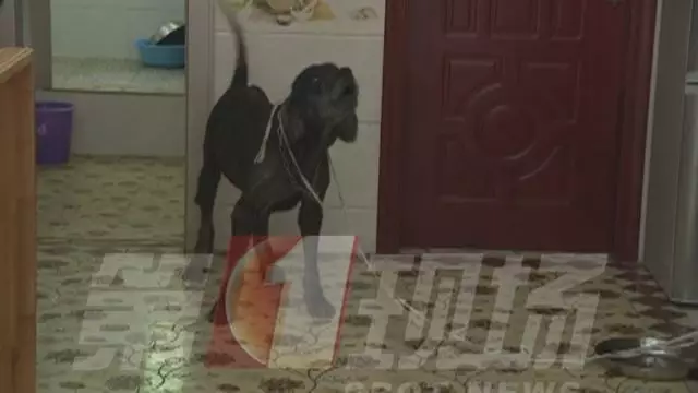 上午十点,记者跟随社区物业管理人员,找到了狗主人胡先生。这只被周边居民多次投诉的大狗,就栓在客厅里,看到陌生人前来,马上发出威胁的吼声。